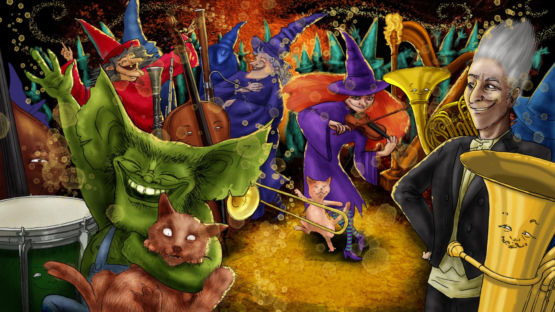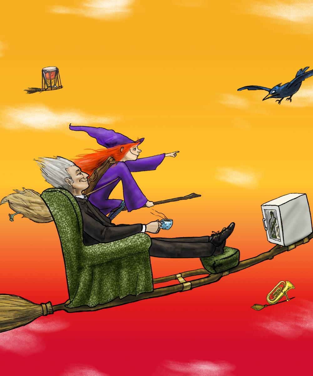 Doch unglaublich! Das fliegende Orchester trifft Tschaikowsky, Bach, Mozart … höchstpersönlich! Ob es am Schluss doch noch an der internationalen Hexenparty aufspielen kann?