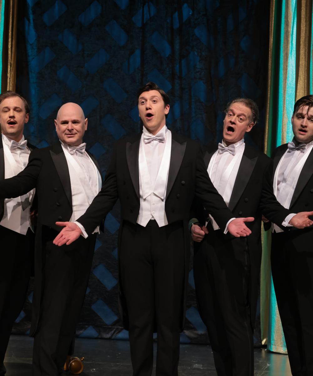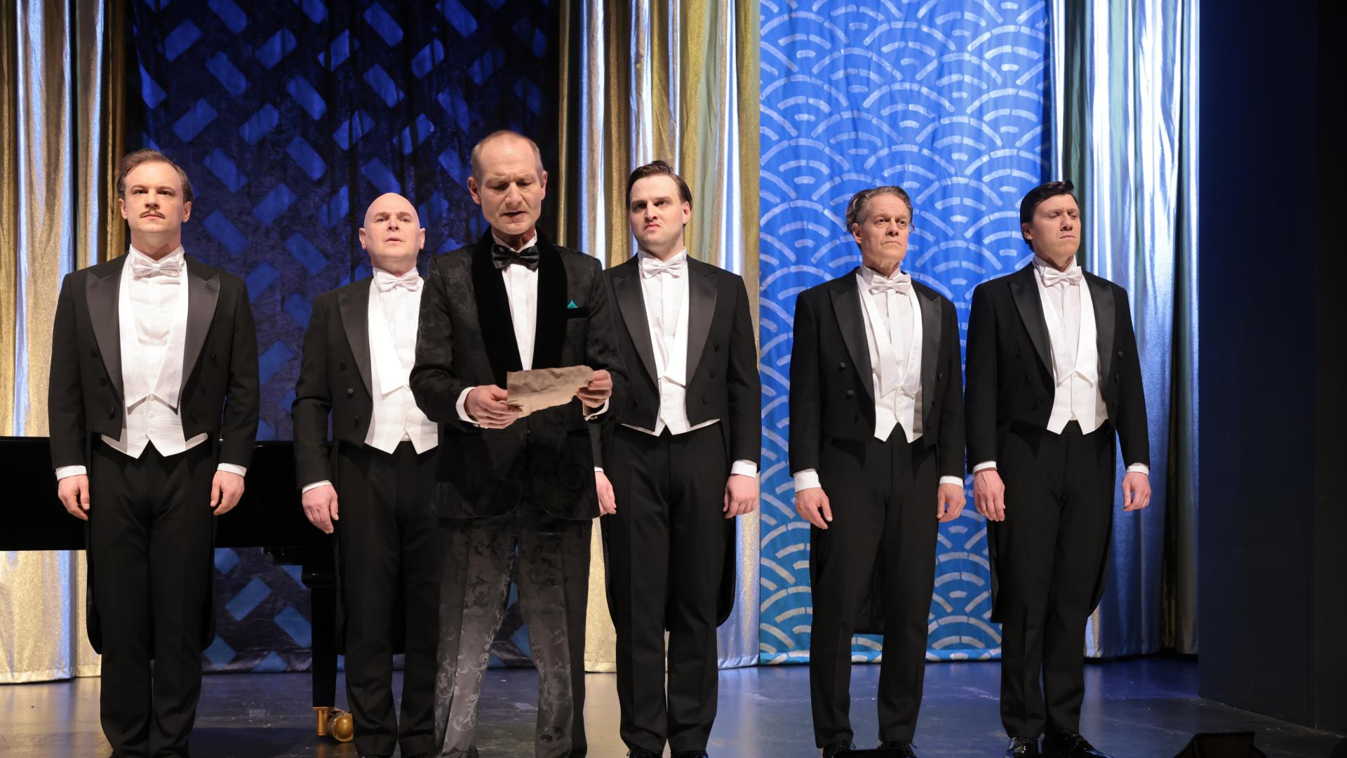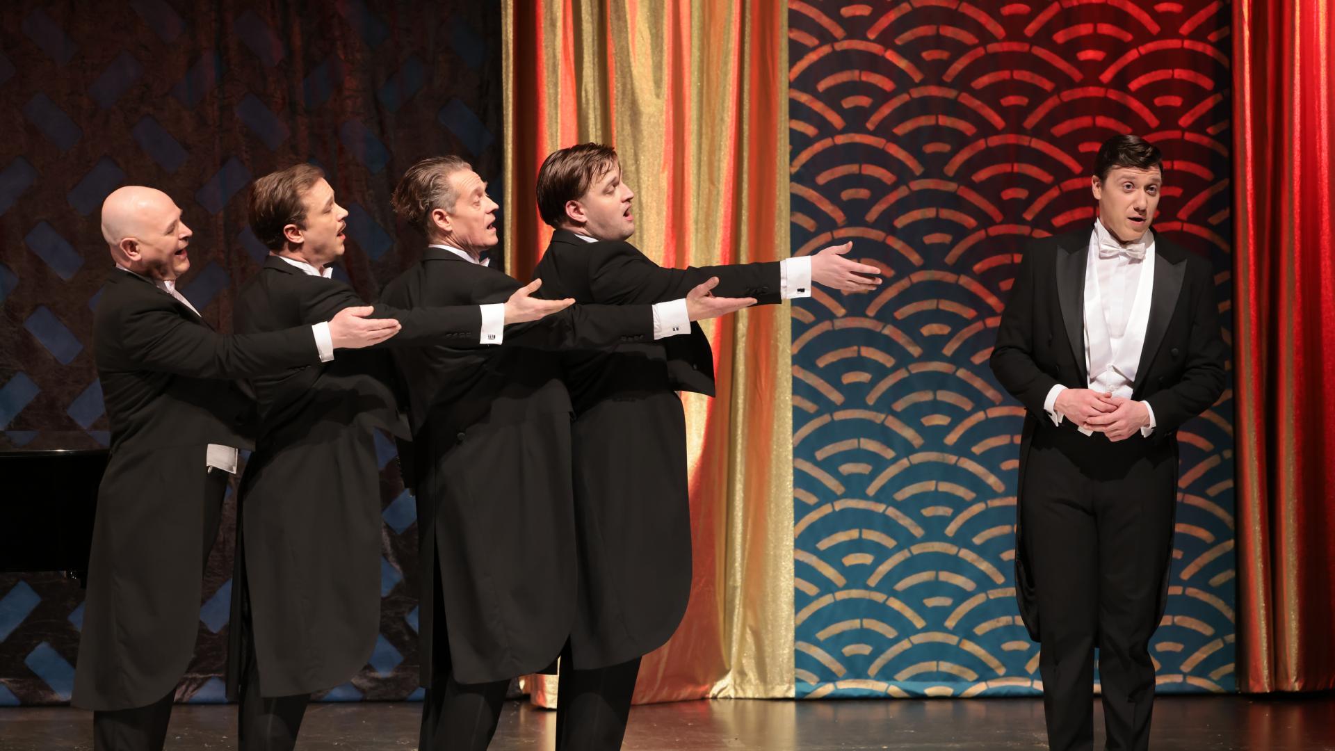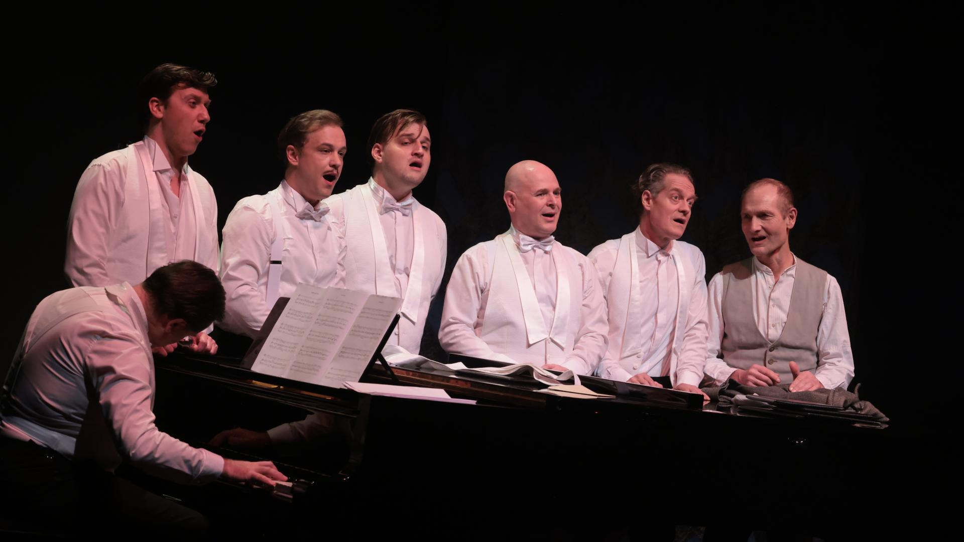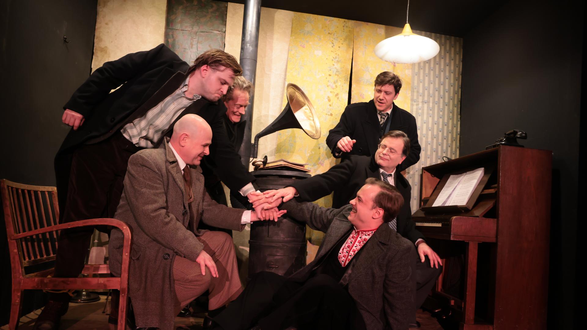 Mit Gassenhauern, Charme und Humor an die Spitze. Der Schauspielschüler Harry Frommermann ist ein leidenschaftlicher Fan der amerikanischen A-cappella-Gruppe „The Revelers“ und möchte ihnen nacheifern. 1927 stellt er eine Zeitungsannonce in den Berliner Lokalanzeiger, um ein eigenes Ensemble auf die Beine zu stellen, wie man es in Deutschland bisher noch nicht erlebt hat. Über 70 Kandidaten singen bei ihm in der Wohnung vor, doch er nimmt nur die besten für das Sextett. Aus Robert Biberti, Ari Leschnikoff, Roman Cycowski, Erich Collin und Harry Frommermann werden die Comedian Harmonists. Als noch der Pianist Erwin Bootz dazustößt, gibt es für die Musiker kein Halten mehr. Mit ihren komödiantischen Schlagern feiern sie einen Erfolg nach dem anderen. Den Höhepunkt ihrer einmaligen Karriere bildet der Auftritt in der Berliner Philharmonie. Dort müssen sie dann aber feststellen, dass sie mit Talent und Ehrgeiz allein nicht alle Hindernisse überwinden können … Durch zeitlose Klassiker wie „Veronika, der Lenz ist da“ und „Mein kleiner grüner Kaktus“ gelten die Comedian Harmonists bis heute als eine der beliebtesten deutschen Gesangsformationen. Mit ihrem musikalischen Schauspiel haben Gottfried Greiffenhagen und Franz Wittenbrink eine liebevolle und unterhaltsame Hommage geschaffen. Die Geschichte des Berliner Vokalensembles erzählt dabei auch viel über eine dunkle Epoche der deutschen Geschichte.