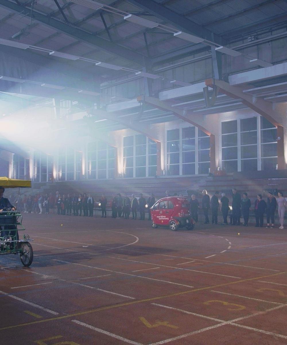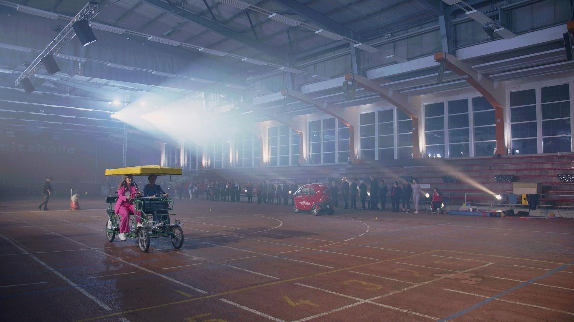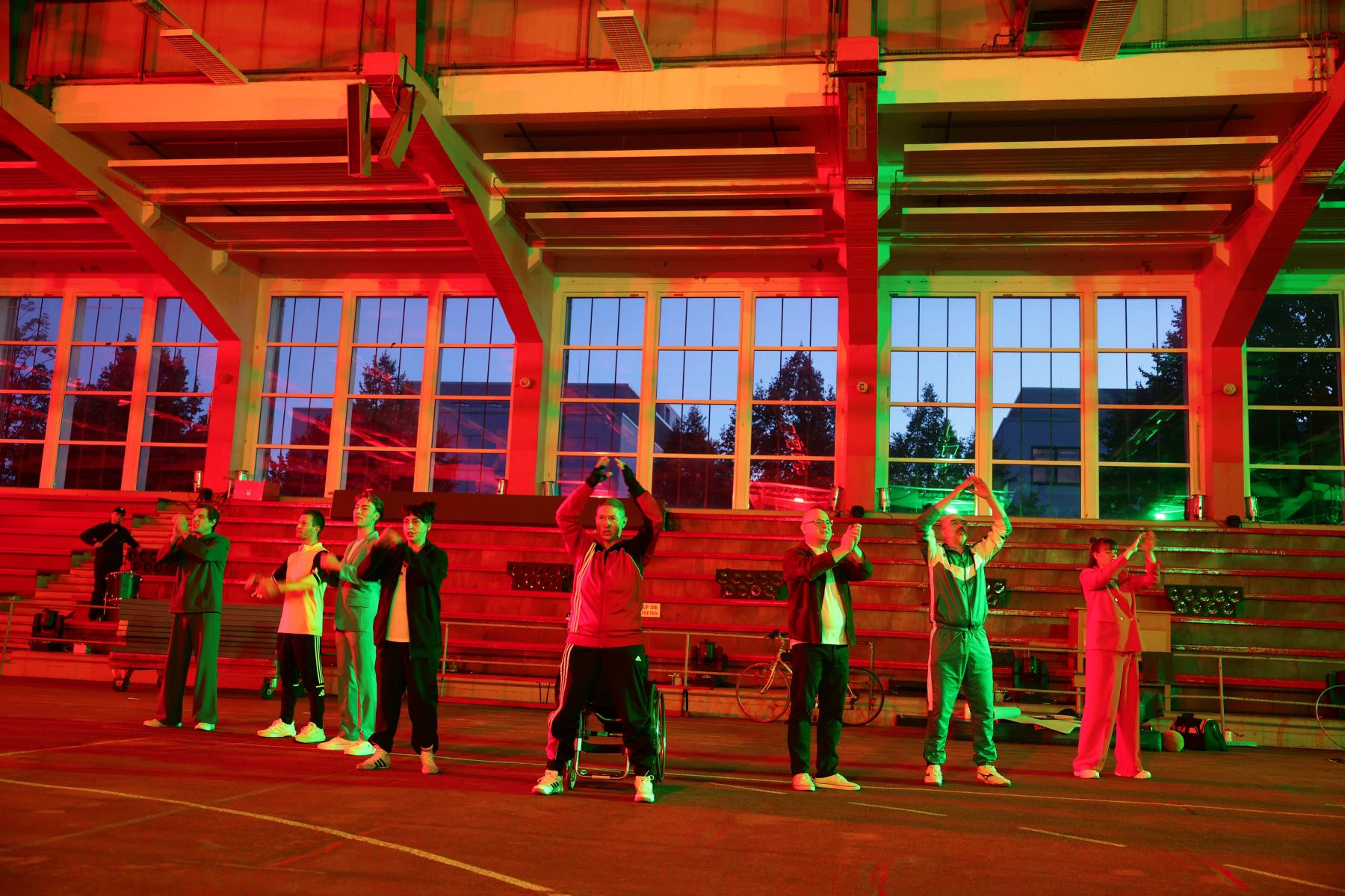 Bevor die Bagger zum Umbau und teilweisen Abriss anrollen, erwecken wir ihre Geschichte noch einmal zum Leben. Wir blicken auf die Halle und den Sport, damals und heute. Auf das, was war, was bleibt und was kommt. Inspiriert von Interviews und Archivmaterial entsteht ein unvergessliches Theaterereignis: Schauspiel trifft auf Sportchoreografien, Musik und eine faszinierende Großpuppe. Im Mittelpunkt stehen acht Figuren, deren Biografien eng mit der Halle und dem Sport verwoben sind. Sie waren Sportstars oder wollen es noch werden. Manche verdanken dem Sport ihr Leben, andere haben durch ihn fast alles verloren. Schritt für Schritt enthüllen sie ihre Geheimnisse und führen das Publikum in Räume, in denen Theater und Realität verschwimmen. Am Ende geht es – wie so oft im Sport und im Theater – um alles.
