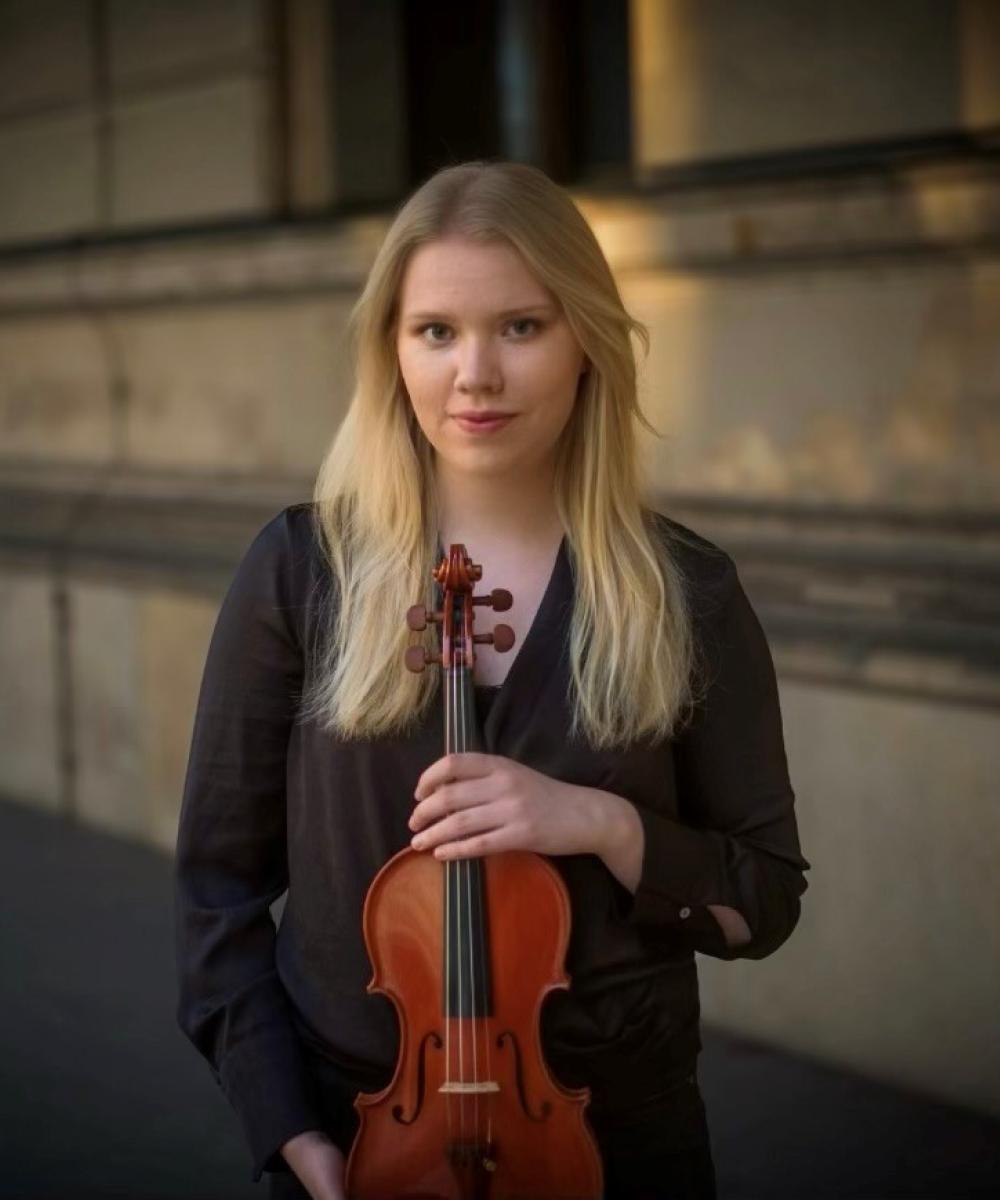 Die finnische Geigerin Iidamari Ahonen studiert an der Universität der Künste Berlin und konzertierte bereits mit renommierten Orchestern wie dem Finnischen Radio-Sinfonieorchester, der Tampere Philharmonic und der Baltic Sea Symphony. Sie wurde mit dem Usedomer Musikpreis 2025 ausgezeichnet und ist Mitglied des ILOA Streichquartetts. Neben ihrer Tätigkeit als Solistin und Konzertmeisterin gastiert sie regelmäßig bei internationalen Festivals in ganz Europa.