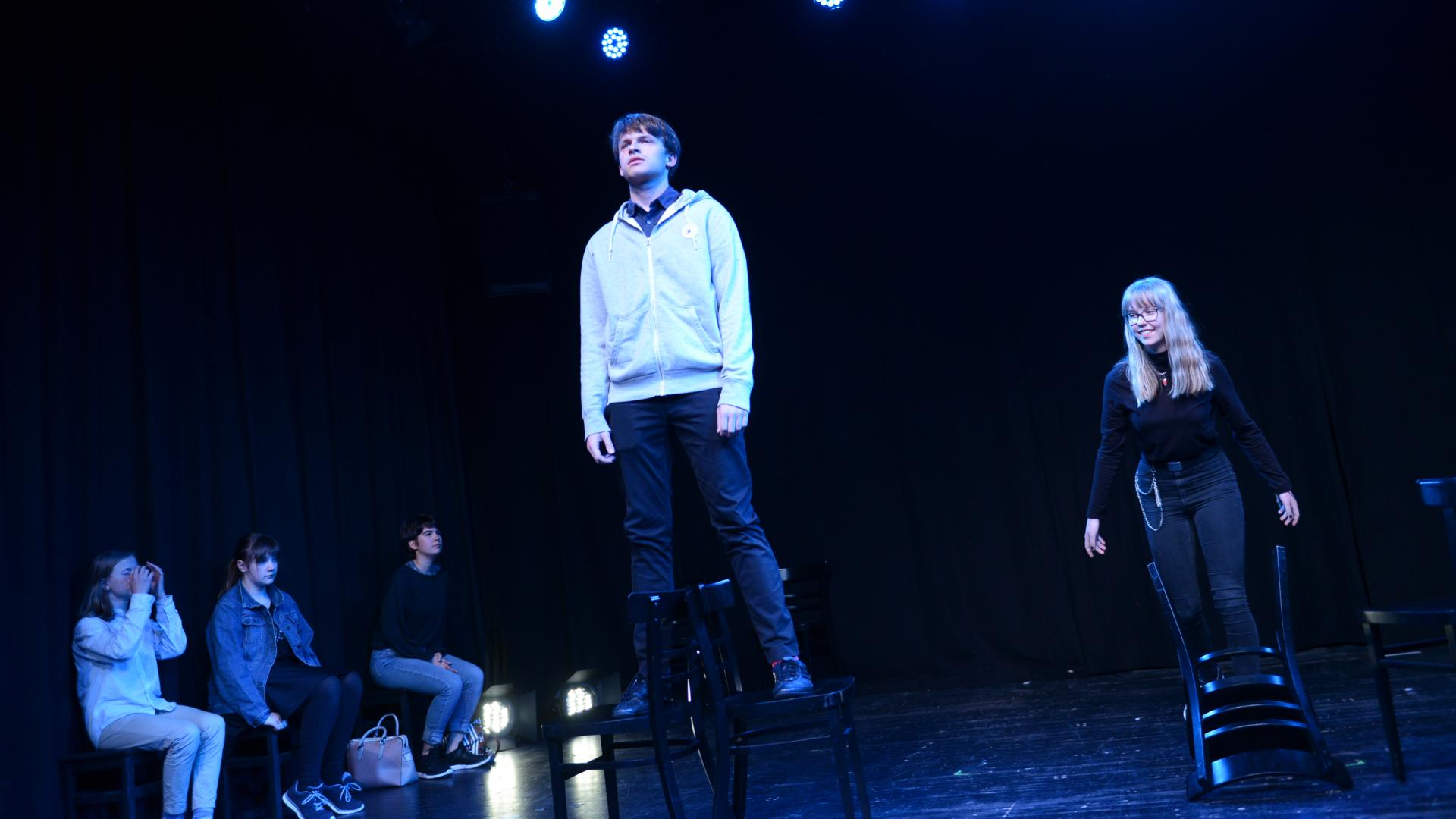 Was braucht es alles für’s Theater? Schauspiel? Klar. Aber da gibt es doch noch ganz andere Arten sich auf der Bühne auszutesten. Wir machen uns auf die Suche nach genau diesen unterschiedlichen Ausdrucksformen. Was ist eigentlich Performance? Wie schreibe ich einen Monolog? Und wie eine Szene? Was kann ich allein mit Geräuschen darstellen und wie kann ich unterschiedliche Materialien für die Bühne umfunktionieren?